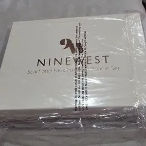 Nine West Plaid Scarf and Pom Beanie Set