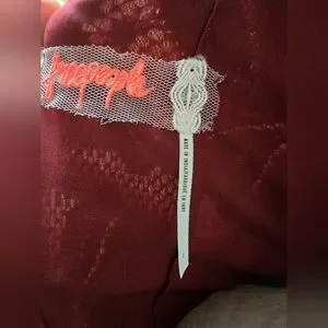 Elegant burgundy lace dress with intricate embellishments. Perfect for special occasions.