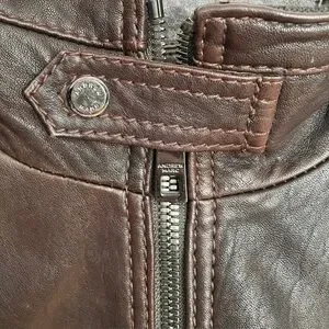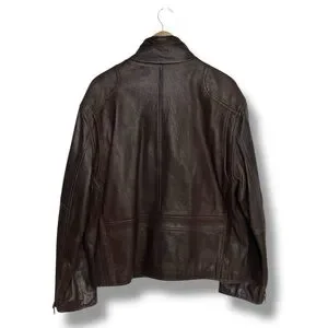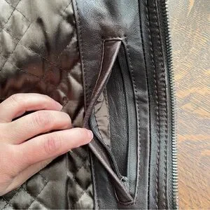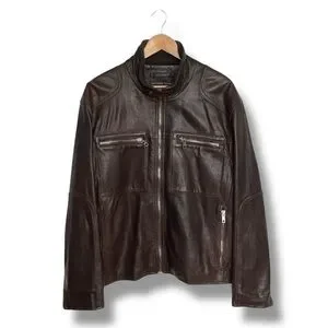 Andrew Marc Chocolate Brown Leather Moto Jacket Men’s Large Quilted Lining