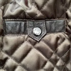 Interior quilted lining has small lint/fuzz typical of normal wear (not damage).