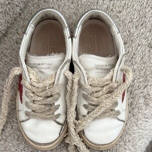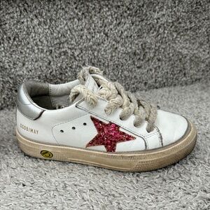 Golden Goose May Young with fuchsia glitter star and metallic leather heel tab
