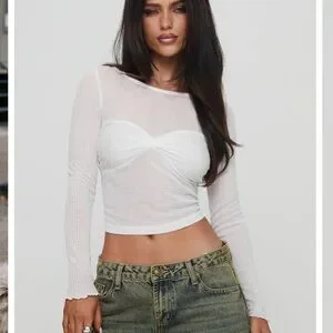 Princess Polly White Long Sleeve Twist Front Crop Top