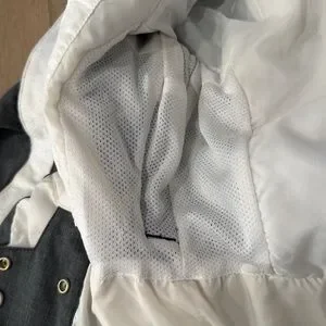 Underarm zips to open when you’re hot skiing. Zipped pockets. Toggles on the hood to cinch.