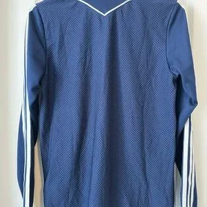 Features classic Adidas 3-stripe sleeves, full zip front, and zip pockets. Great for sports, training, or everyday casual wear.