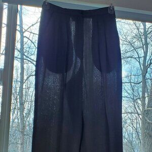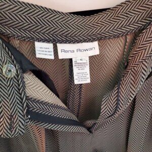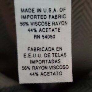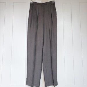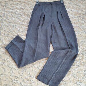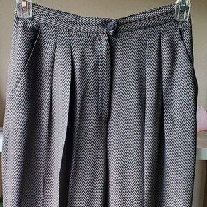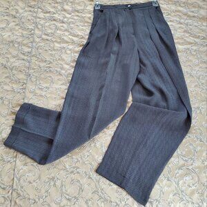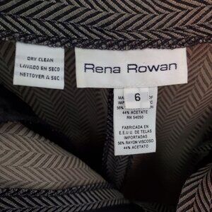 Rena Rowan elegant dress trousers. 56% viscose rayon, 44% acetate herringbone delicate fabric. No lining. Light and comfortable. Feminine pleaded design with 2 front hidden pockets and front 8 in zippered and 2 buttons closure, straight legs cut. Chic and classical look. Made in the USA. Pre-owned, excellent condition. Perfect for summer formal or evening events.