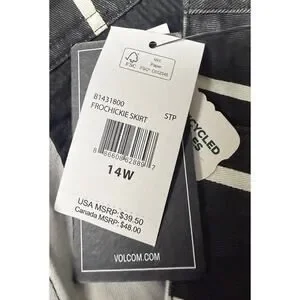 Volcom Frochickie Stripe Mini Skirt Womens 14W Black White Zip Front NWT New