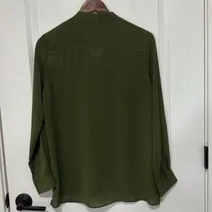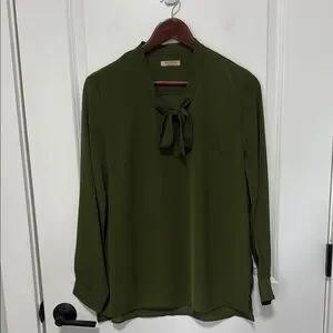 ACEVOG Women’s Long Sleeve Army Green Blouse with Bow size Medium