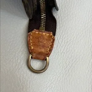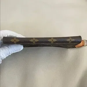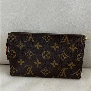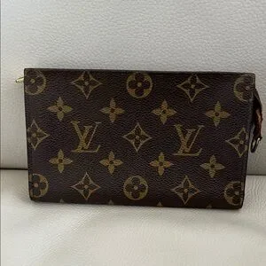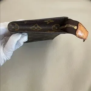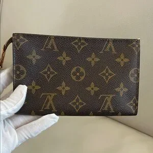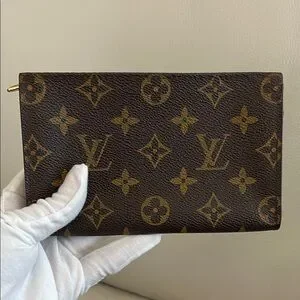 Iconic authentic Louis Vuitton monogram canvas pouch. Streamlined silhouette for easy carrying. Timeless designer accessory.