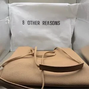 8 Other Reasons vegan leather slouchy bucket bag is new in original packaging with dustbag. Pebbled vegan leather exterior with faux suede lining featuring one main compartment. Dual vegan leather shoulder straps. Measures approx. 13.75" W x 11.5" H x 5.5" D. Shoulder strap with a 13.5" drop. Retails for $149. Sold out on their website.