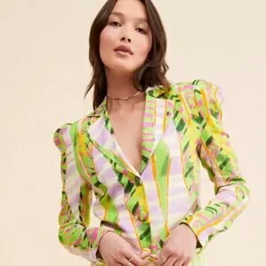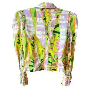 The iconic Jessy Abstract Blazer by Colin LoCascio—as seen on Nuuly and Anthropologie! This 100% linen jacket features a vibrant, head-turning print in neon green, lilac, and pink. Known for dressing stars like Bella Hadid and Cardi B, LoCascio’s pieces are the definition of "paparazzi-ready" style.
