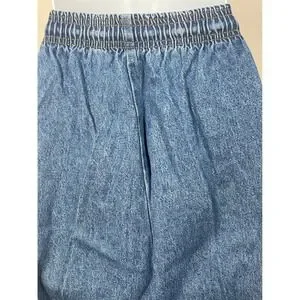 Keywords: Vintage Denim, High Waisted, Elastic Waist, Drawstring, Mom Jeans, Relaxed Fit, Made in USA, 90s Style, Tall Jeans, Cotton Denim, Casual, Minimalist, Retro, Loungewear Denim, Comfort Fit
