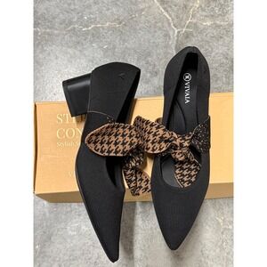 VIVAIA Elegant Black Low Heel Pumps with Bow Detail – Chic Comfort Pointed Toe