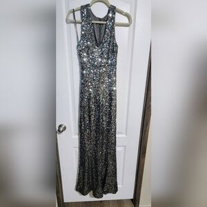 French Connection Silver Sequin Maxi Dress