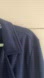 Elegant deep blue pea coat with a classic double-breasted style. Perfect for any occasion. Measures 24.5 inches pit to pit; 23 inches in length. Has raw edge around cuffs and hemline. Very soft and stretchable made of 💯% cotton.
