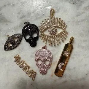 Lot of fun pendants for jewelry making skulls evil eye mama