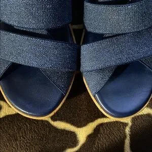 2 1/2 inch blue denim wedges by Italian Shoemakers. Cute and comfortable wedges to add to your shoe collection.