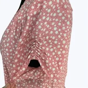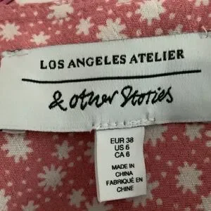 & Other Stories Pink Floral V Neck Wrap Midi Dress Ruched Puffed Sleeves SZ 6