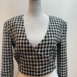 Zara Black & White Houndstooth Wrap Crop Top M