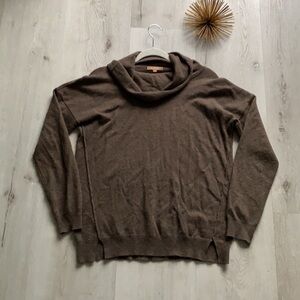 Kier & J Cashmere Sweater brown turtleneck side slits super soft size L
