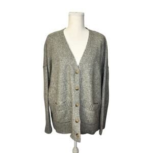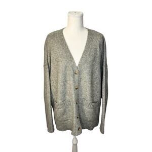 Ella Moss Button Cardigan Sweater Women's Large Olive Green Marled Knit Drop Shoulder Minimalist Cozy Casual