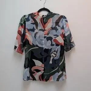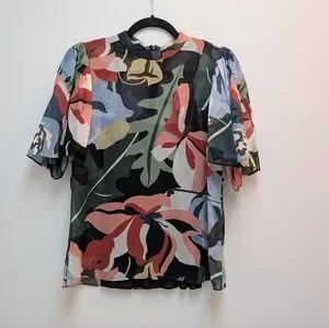 Rebecca Taylor Botanical Garden Mock Neck Silk Blouse size 4