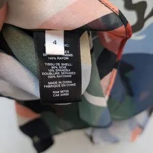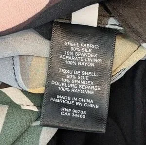 Fabric: 90% silk, 10% spandex (shell); 100% rayon (lining)