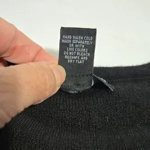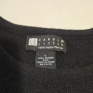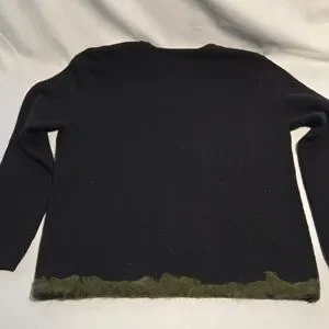 Black vintage Carol Little Marino wool sweater. Upcycled with whimsical felted mushrooms on the front.