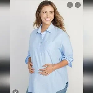 Old Navy Oxford Boyfriend Popover Light Blue Button-Up Maternity Shirt S