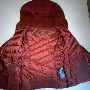 Bernardo Womens XS Rust Brown Criss Cross Hooded Puffer Jacket Fleece Lined Hood