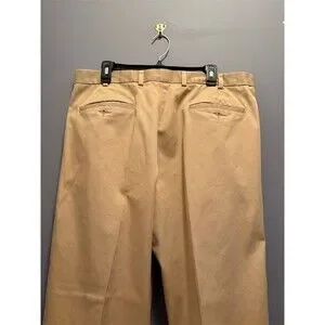 Brooks Brothers Advantage Chino Elliot pants in classic tan/khaki make getting dressed feel effortless. The pleated front sits comfortably at the waist, while the tapered leg and cuffed hem keep the look sharp without trying too hard. Finished with a button/zipper closure, side pockets, and back welt pockets—easy to pair with a blazer, oxford, or tee. Ideal for business casual, office days, dinners, and weekends. Pre-owned.