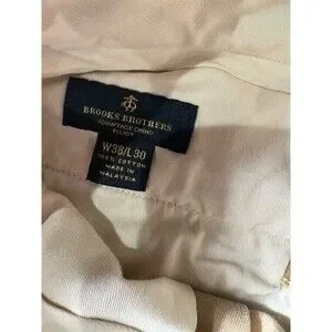 Keywords: Brooks Brothers, Advantage Chino, Elliot fit, men’s chinos, tan khaki pants, 38x30, pleated front, cuffed hem, tapered leg, business casual, office pants, solid beige, button zipper fly, welt pockets, dress casual pants