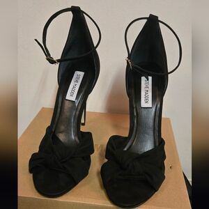 Steve Madden Black Knotted Ankle-Tie Stiletto Sandals