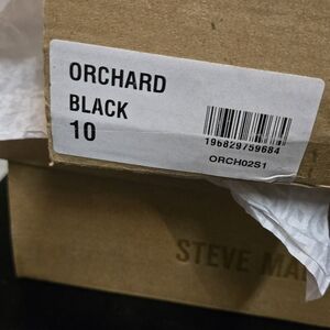 Knotted front straps with open toe. Tall stiletto heel for sleek silhouettes. Ankle ties secure the fit. Smooth black upper for versatile wear. Size 10, 4.5" heel. The box is roughed up but the merch is like new.