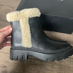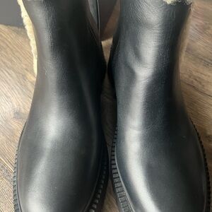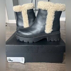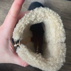 Coach Jane Bootie Womens Size 8 Black Leather Bootie, Sherpa Trim Side Zip NEW