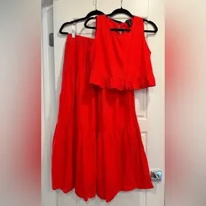 Nicole Miller Linen Blend Skirt Set Womens Medium Tiered Maxi Vacation Cruise