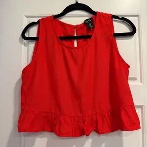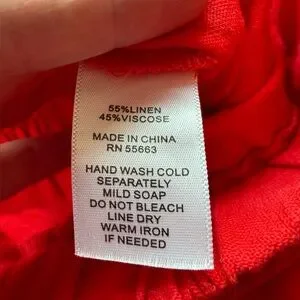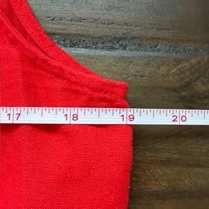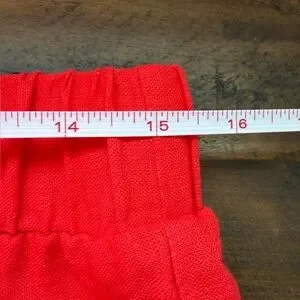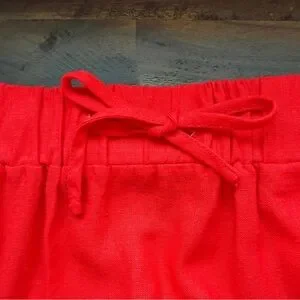 This set is adorable!! It's begging for a trip to the ocean. It's a really nice weight linen blend that is hand washable. The skirt has a drawstring and elastic waist and the top is cropped and will keep you cool.
