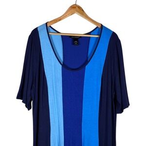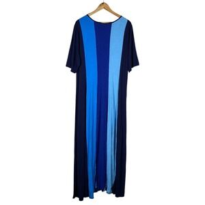 Ashley Stewart Colorblock Vertical Stripe Maxi Dress Blue Plus Size 22/24W