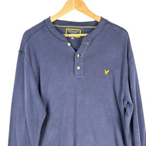Keywords: American Eagle, Henley, Long Sleeve, Mens, Navy Blue, Casual, Comfortable, Embroidered Logo, Everyday Wear, Layering Piece, Basic, Essential, Workwear