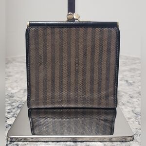 Vintage Fendi Pequin Stripe Bifold Kisslock Wallet