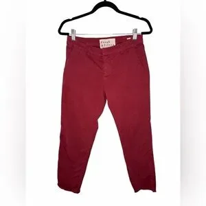 Frank and Eileen Wicklow Italian performance twill chinos in Merlot. Relaxed straight leg cropped fit and perfect for everyday. Mid rise waist with a distressed hem. 4-way stretch for comfort. Front slant pockets and back welt pockets. Zip fly with hook and bar closure. 97% Cotton. Like new condition. Smoke free home