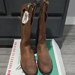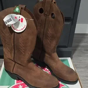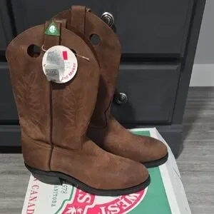 Rugged TC cowboy boots. Dark brown leather. Classic western stitching. Durable and stylish.