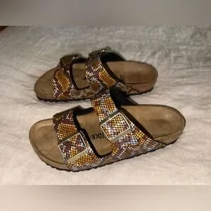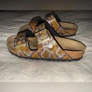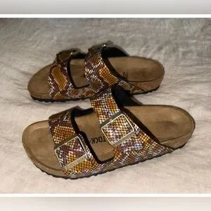 NWT Birkenstock Arizona Gizeh Shiny Snake Animal Print Python Sandals