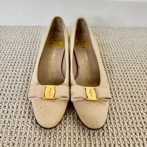 Vintage 90s Ferragamo Vara bow pumps 6B Made in Italy