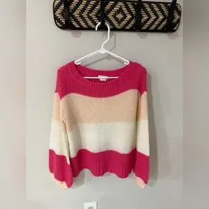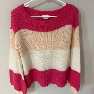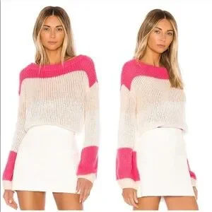 Lovers & Friends Lynn Sweater - Rose Pink Color Block Stripes - Size Small