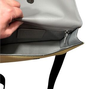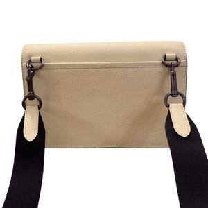 Coach Turner Flap Crossbody bag in the pale lime green colorway featuring refined pebble leather and a black adjustable strap with lime accents. No callouts, except that it does not come with hang tag. NOTE: beautiful lime color is not coming through in the pics