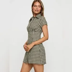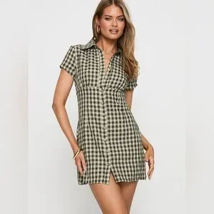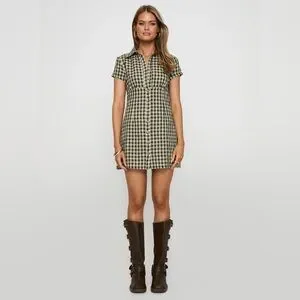 NWT Princess Polly Motley Mini Dress Brown Check Shirt Dress