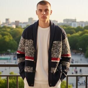 Perfect for cold weather layering, academic vibes, or that rich grandpa aesthetic. Timeless Americana palette with bold visual structure. Excellent condition.