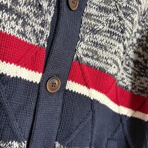 Tommy Hilfiger DarkAcademia Preppy Y2K Cardigan Navy Red Marled Knit Sweater XL