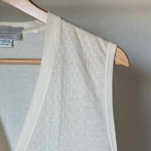 Barneys New York Cashmere Silk Merino Knit Vest Cream Textured Made in Italy