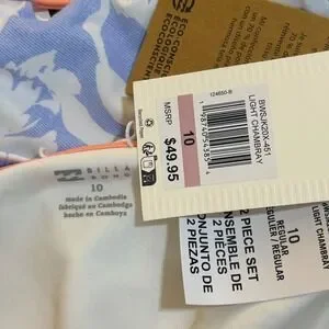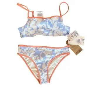 NWT Billabong Girls Floral Bikini Set UPF 50+ Chambray Now Blue Size 10
